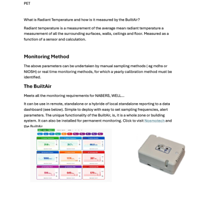 - Indoor air quality monitoring.