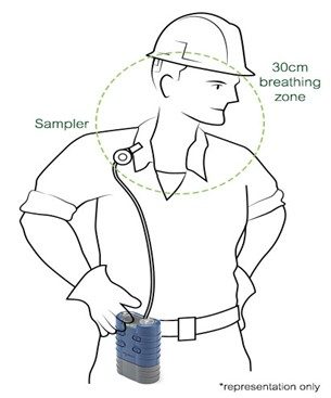 - Personal air sampling to measure what individual workers inhale
